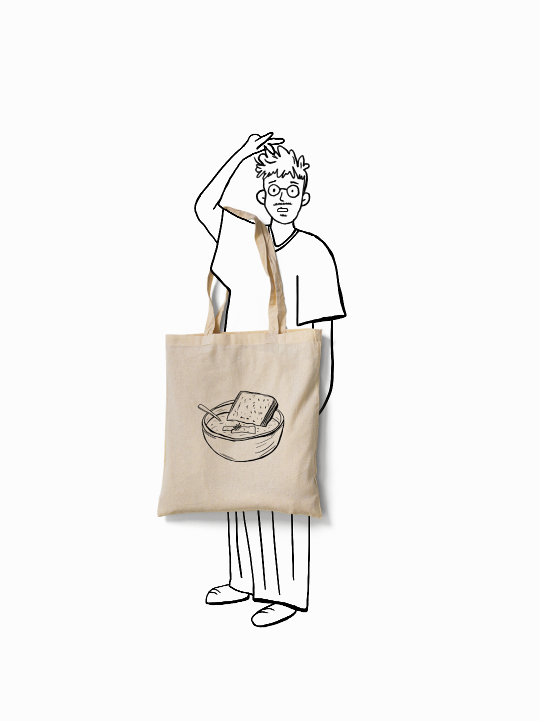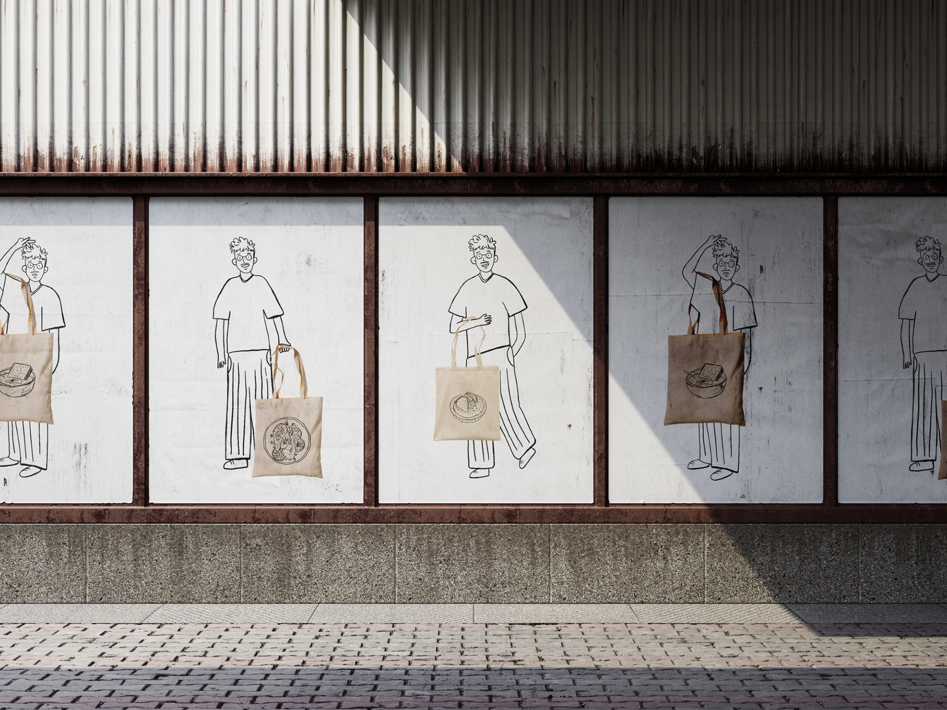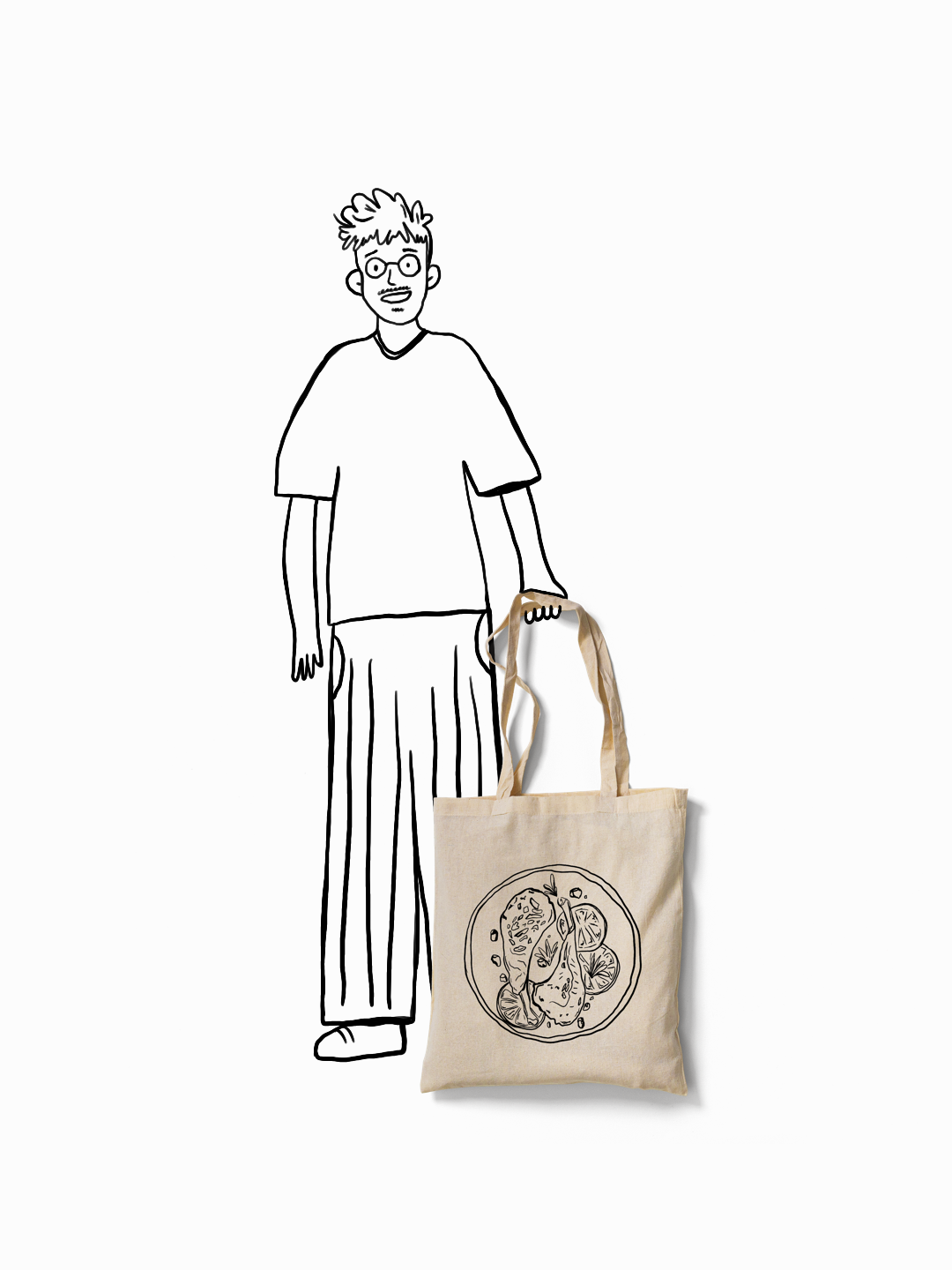 This project was created in response to a prompt-based creative challenge, designed to encourage experimentation and imaginative thinking. The brief required three food categories (appetiser, main course, dessert), a black and white colour palette, and the inclusion of a character, with the additional challenge of applying the outcome to a physical product. I developed a monochrome illustration series that takes the viewer on a playful journey from soup to tart, introducing a small character to bring personality and narrative to the set. The illustrations were then applied to a tote bag, reinforcing the idea of food enjoyed on the go and allowing the concept to live beyond the page. This project allowed me to explore storytelling through illustration while working within a defined set of creative constraints.